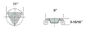 When you need to move just about anything with posts or even without posts these dollies are real people savers! They are compact triangular shaped dollies with a cup center; often called cup dollies or cup casters. One dolly is placed under each post or leg of the article you intend to move; once all posts have dollies you simply roll your article through doorways, onto elevators, down the street, into the truck, or across the room! The swivel wheels and tripod wheel arrangement allow the article to be moved in any direction; even top heavy articles go where you want them too safely and securely.